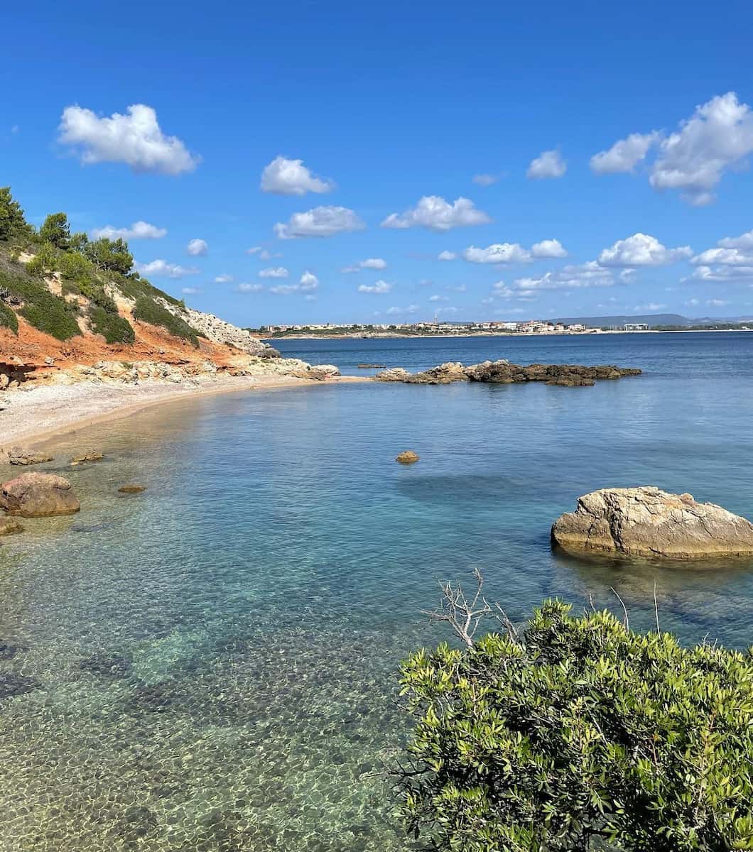 Entorno natural. Las playas se encuentran entre promontorios rocosos cubiertos de vegetación mediterránea, lo que crea un ambiente apartado a pesar de su popularidad. Los pinos proporcionan sombra natural, mientras que el paisaje circundante ofrece oportunidades para practicar senderismo a los visitantes más activos.