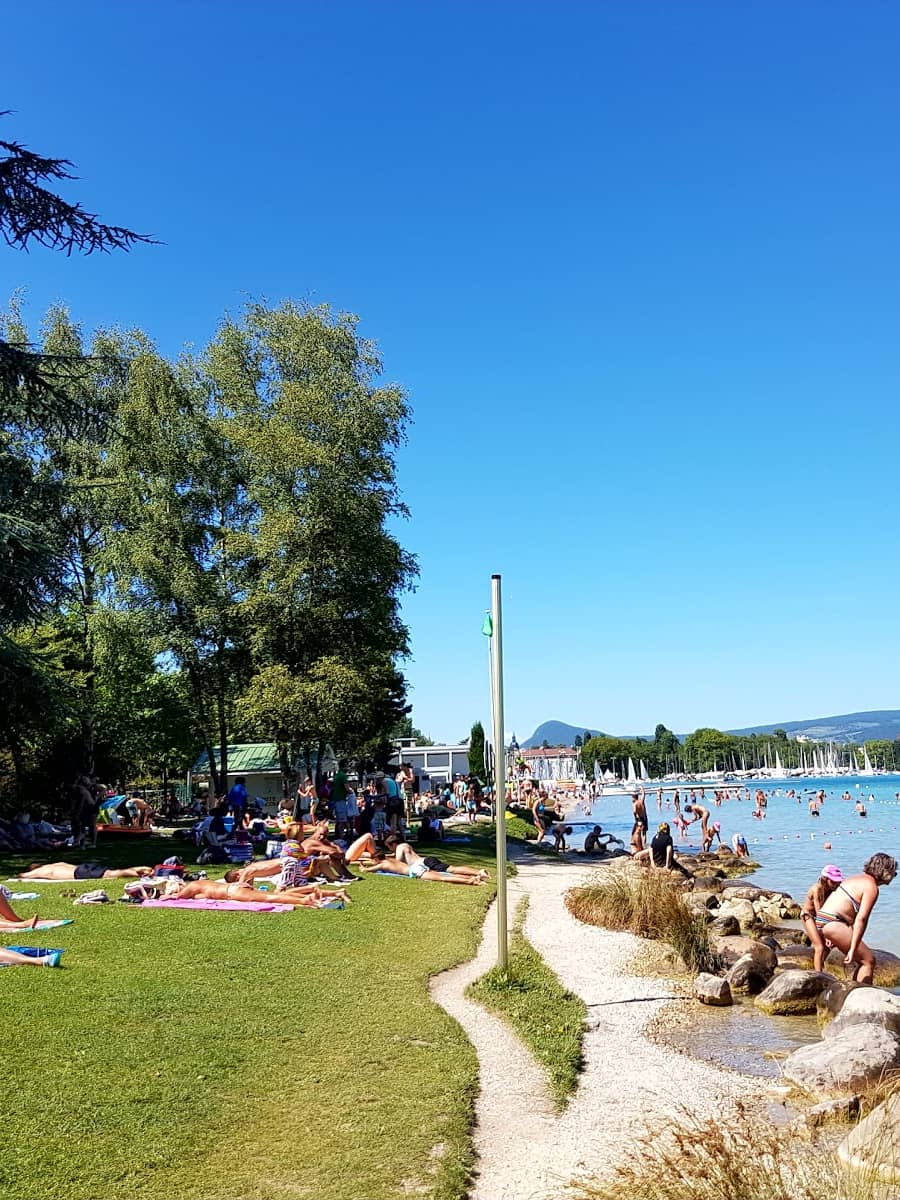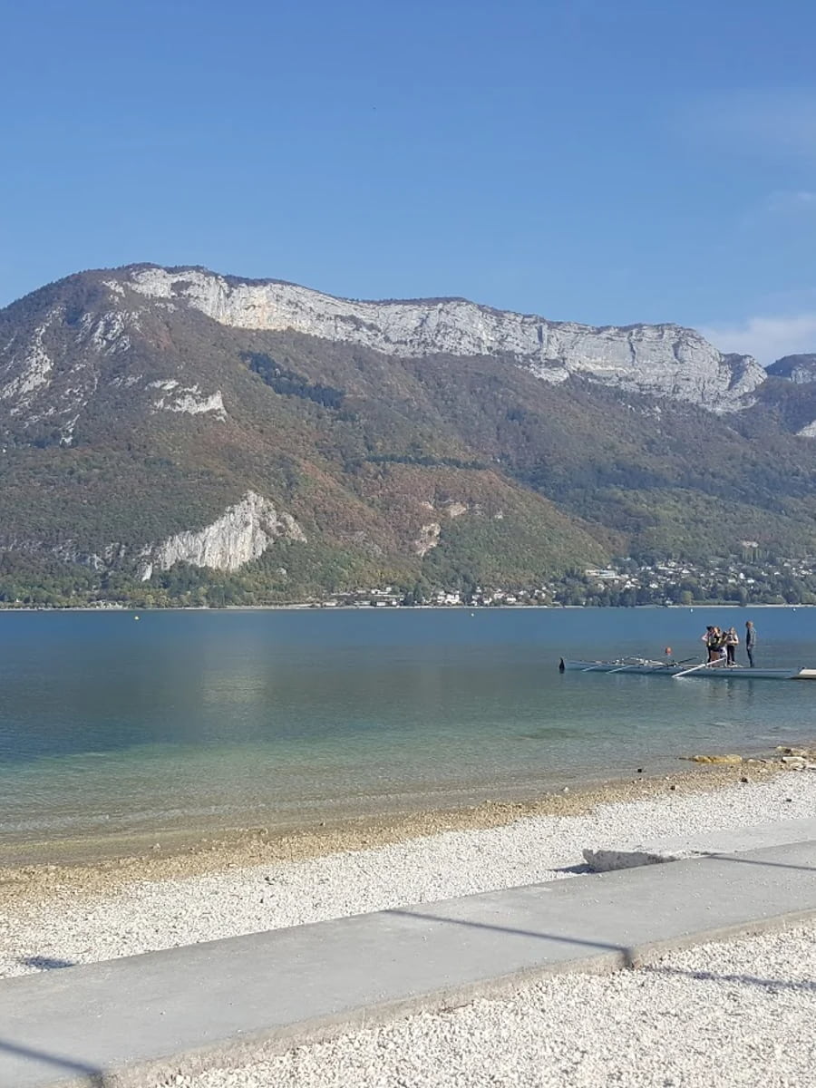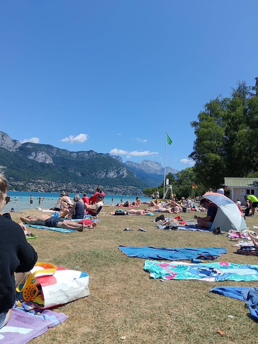 Acceso para nadar. He probado alojamientos junto al lago y alojarse aquí significa que se puede llegar a pie a las zonas de baño designadas en menos de 3 minutos. La temperatura del agua alcanza los 22-24 °C en verano, pero recomiendo consultar los informes diarios sobre la calidad del agua que se publican en la playa de Annecy y en la Plage des Marquisats antes de darse un chapuzón.
