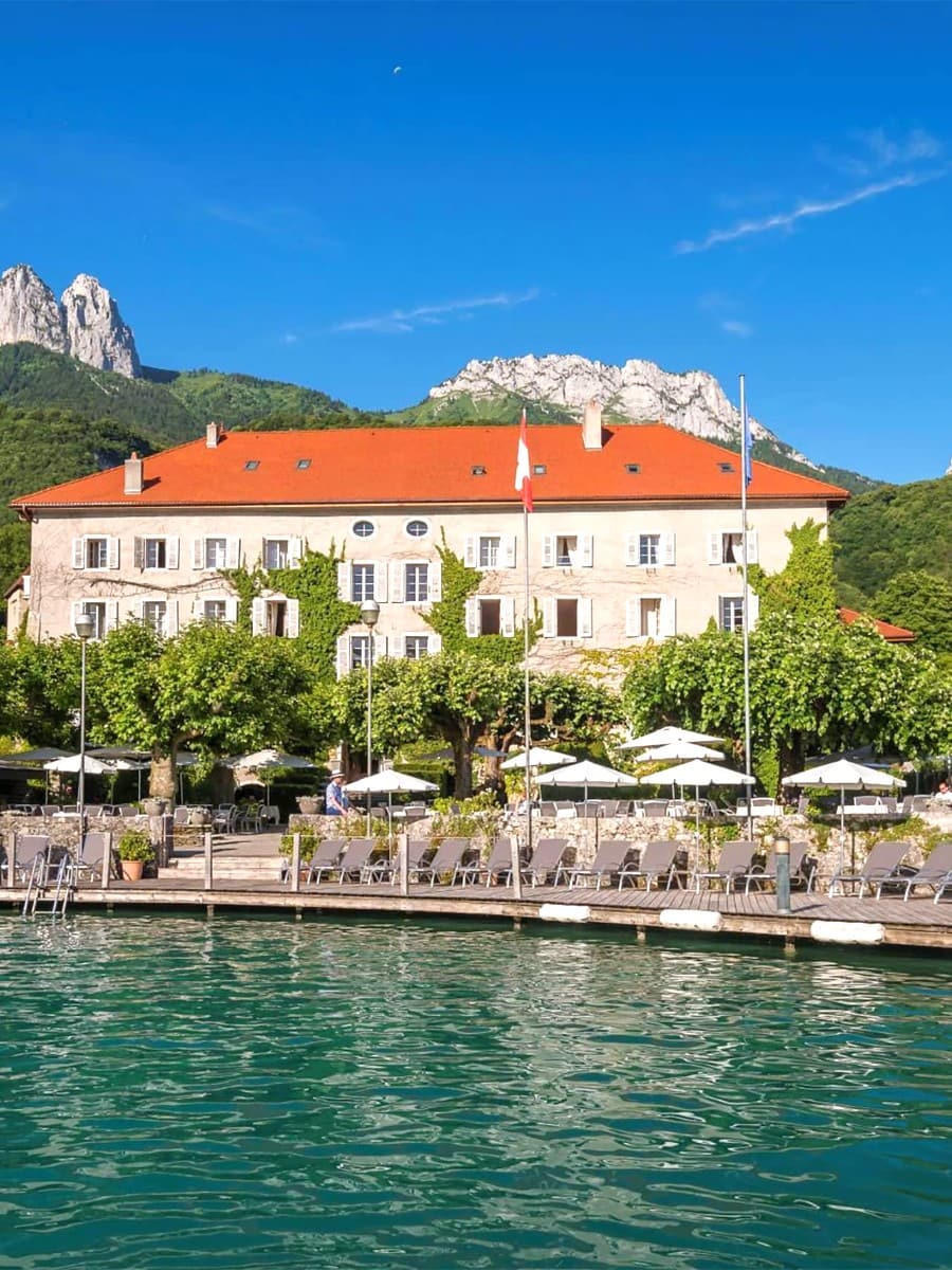 - Abbaye de Talloires – Esta histórica abadía convertida en hotel de lujo ofrece sofisticadas habitaciones en un impresionante entorno junto al lago, con servicios de spa de primera calidad y una excelente gastronomía.
