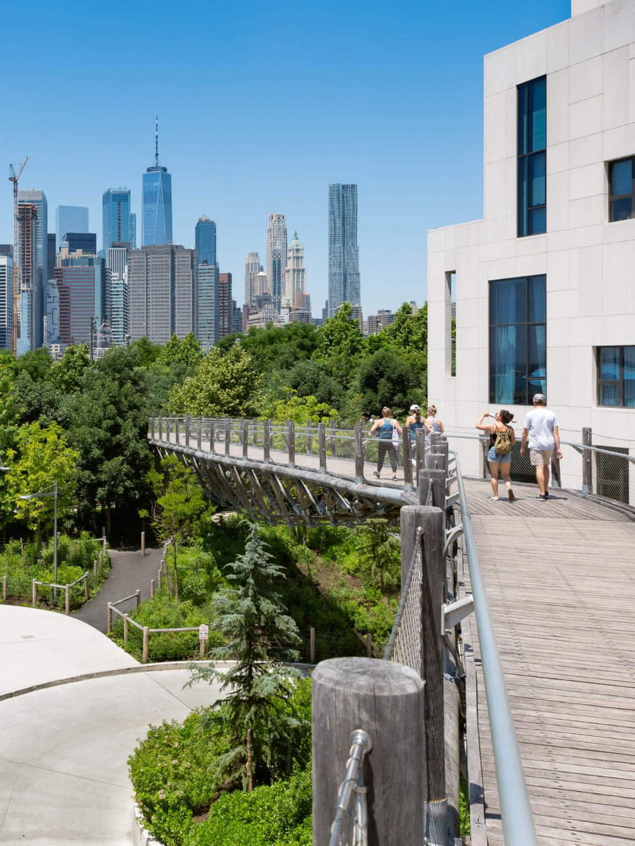 - 1 Hotel Brooklyn Bridge – Este hotel ecológico de lujo hace hincapié en la sostenibilidad con materiales recuperados y paredes verdes vivas en toda la propiedad. La piscina de la azotea ofrece unas vistas espectaculares del skyline de Manhattan, mientras que el restaurante «de la granja a la mesa» y los servicios de spa utilizan productos orgánicos de origen local para ofrecer una experiencia de lujo respetuosa con el medio ambiente.