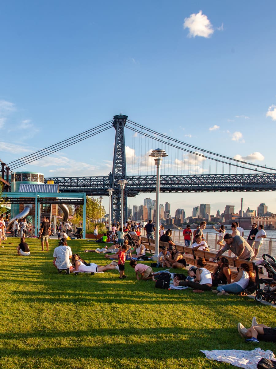 Parques y vistas. Sunset Park (7th Ave y 41st St, abierto de 5:00 a 1:00) ofrece las mejores vistas del atardecer sobre la Estatua de la Libertad y panorámicas del skyline de Manhattan. Brooklyn es el lugar ideal para relajarse al aire libre, reunirse con la familia para hacer un pícnic o jugar al fútbol los fines de semana.