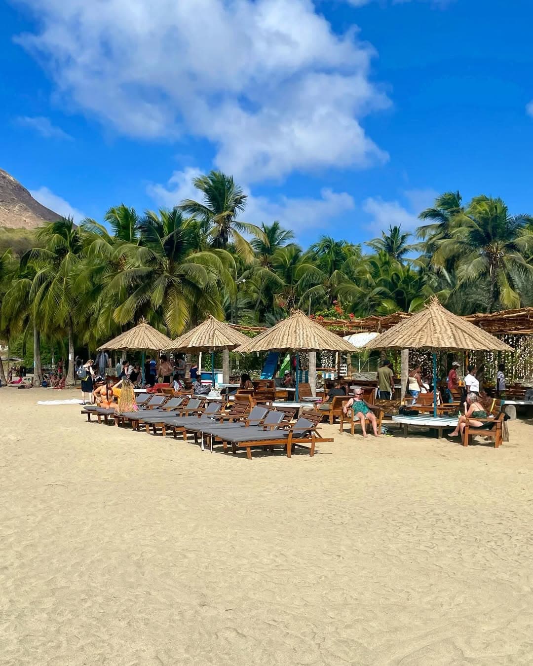 - Playa de Santa Mónica: 18 km de arena blanca virgen, accesible solo en 4×4.