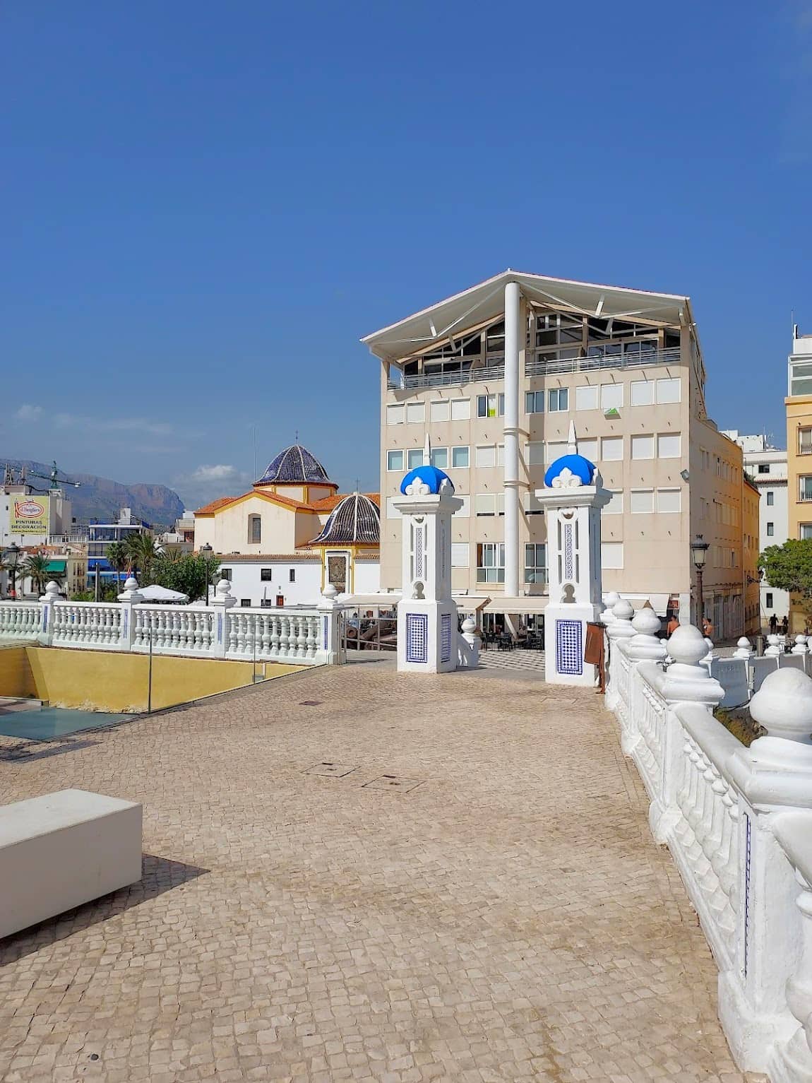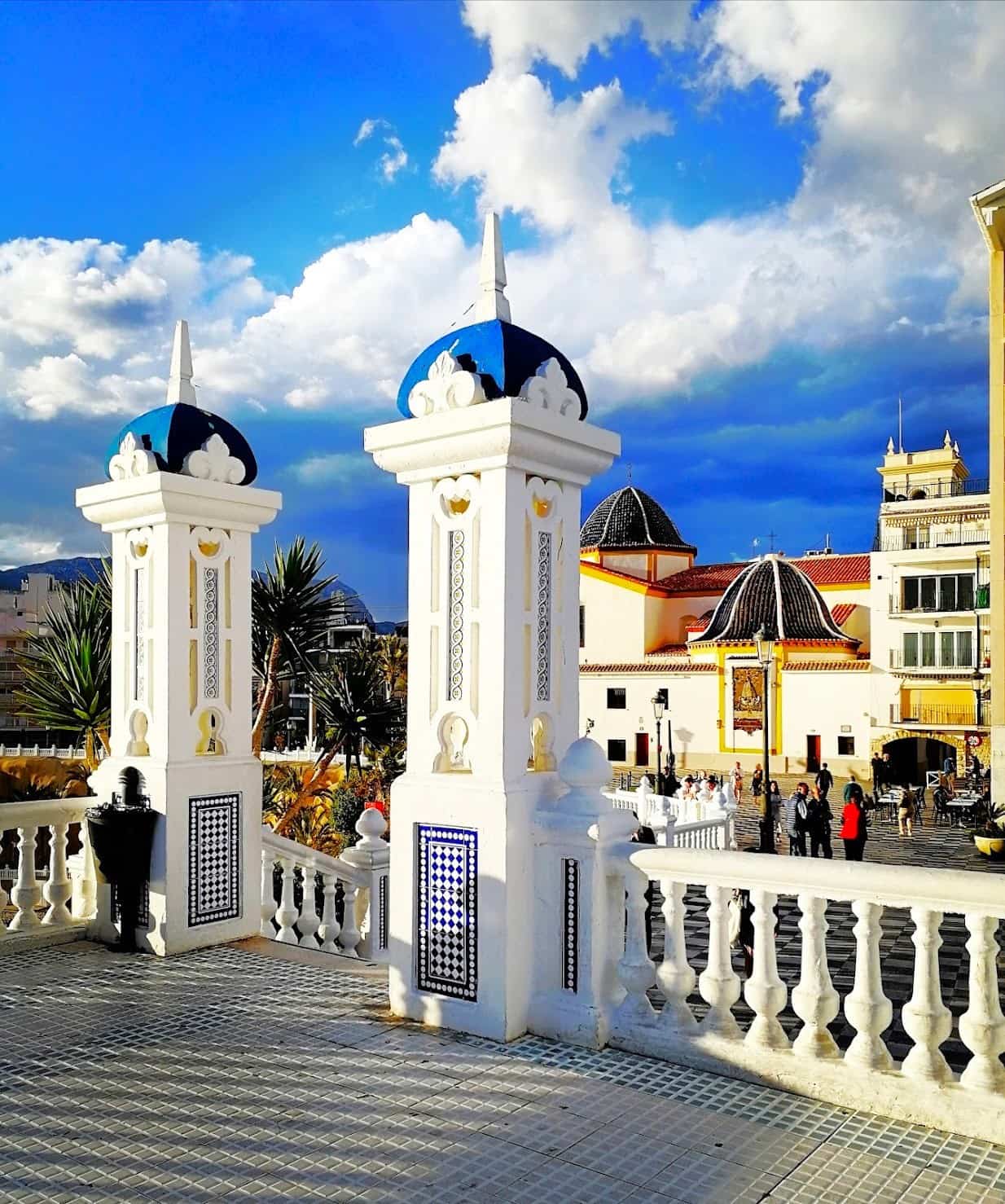 Encanto histórico. La iglesia de San Jaime, con su cúpula azul, se encuentra en el centro de todo, y me encanta ver la puesta de sol desde el mirador del Balcón del Mediterráneo, justo detrás de ella. ¿Lo mejor? Es totalmente gratuito y ofrece unas vistas increíbles de ambas playas.