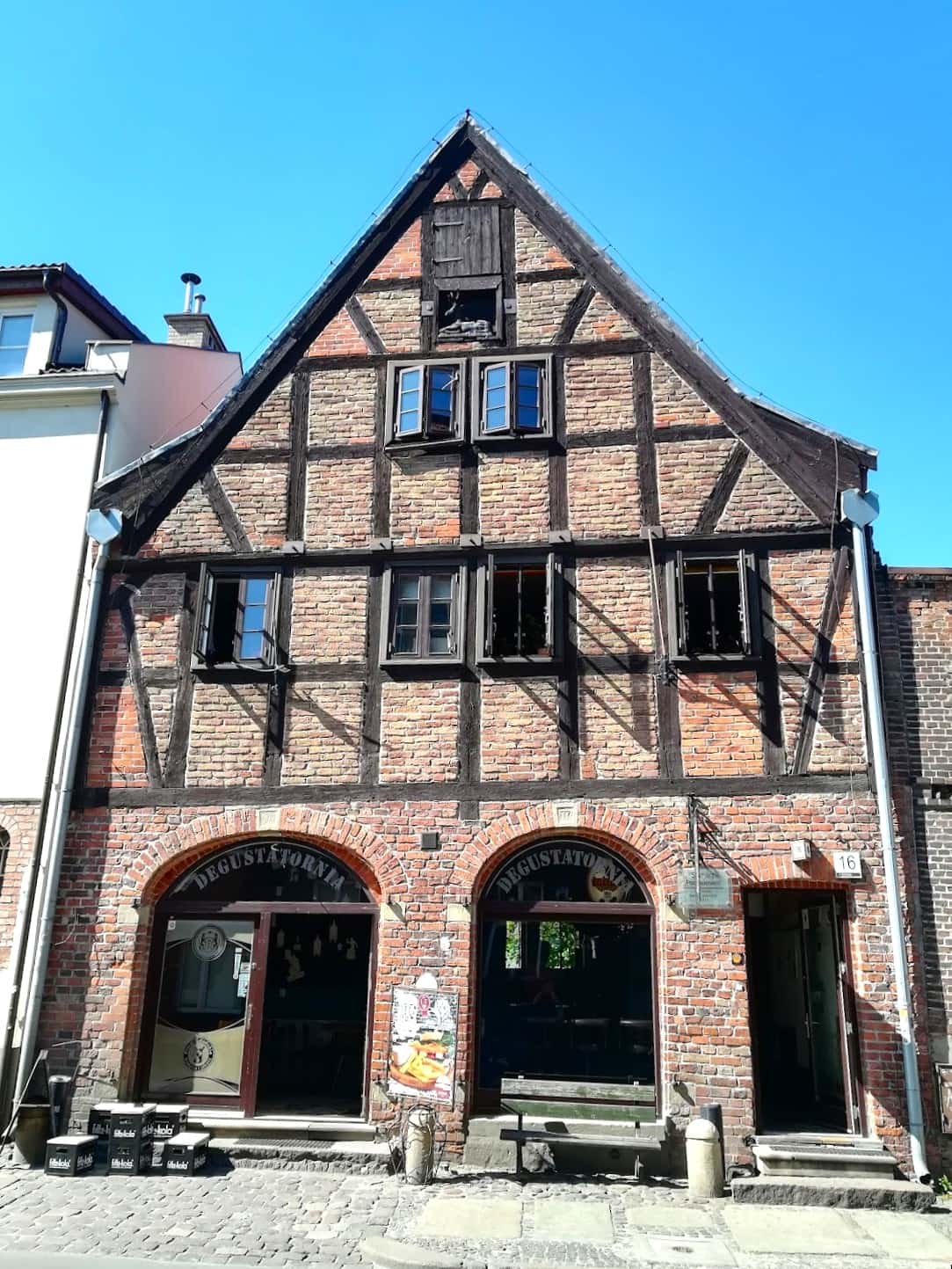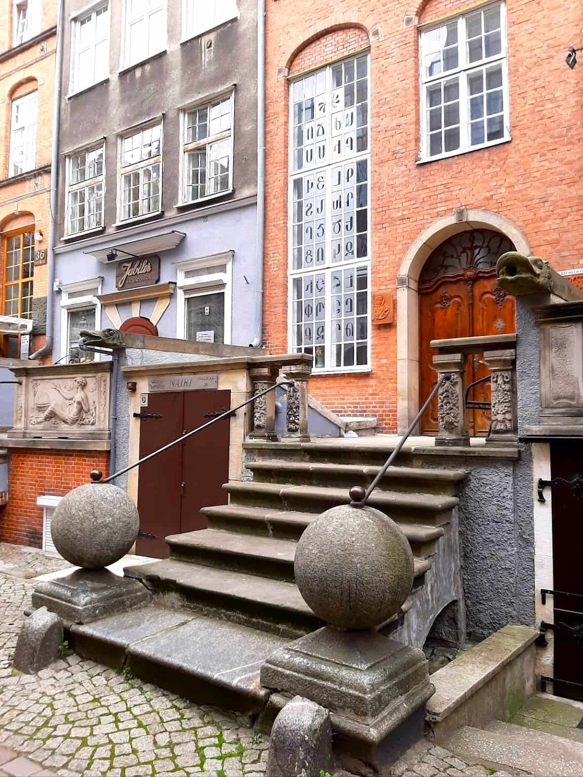 Arquitectura histórica de graneros. Los graneros restaurados de ladrillo rojo crean un impresionante telón de fondo arquitectónico, con algunos edificios que datan de la época medieval. Estas estructuras, que en su día almacenaron el grano que enriqueció a Gdansk, hoy albergan museos, galerías y espacios culturales. El Granero del Cordero Azul funciona como un museo especializado en la historia gastronómica local y los hallazgos arqueológicos.