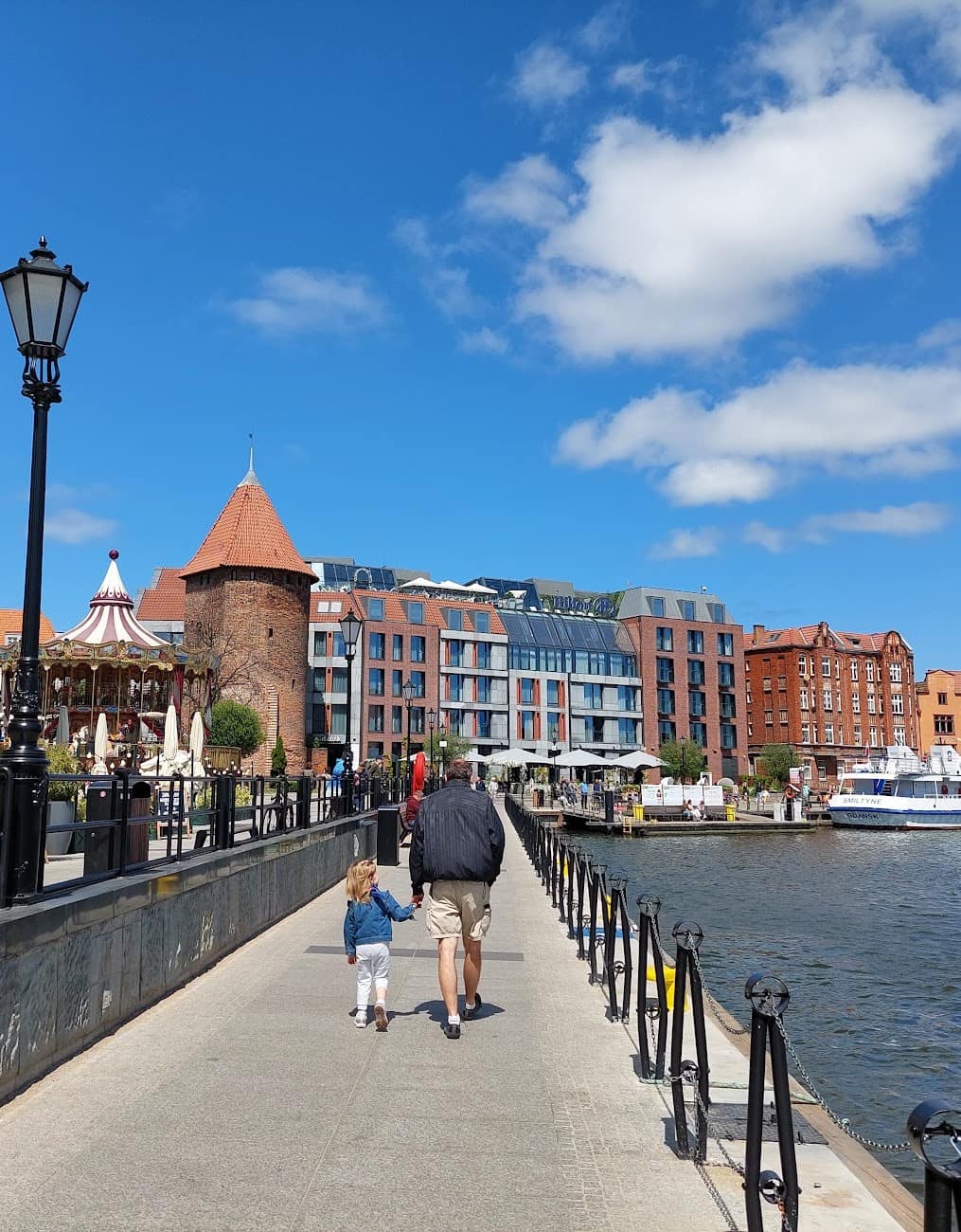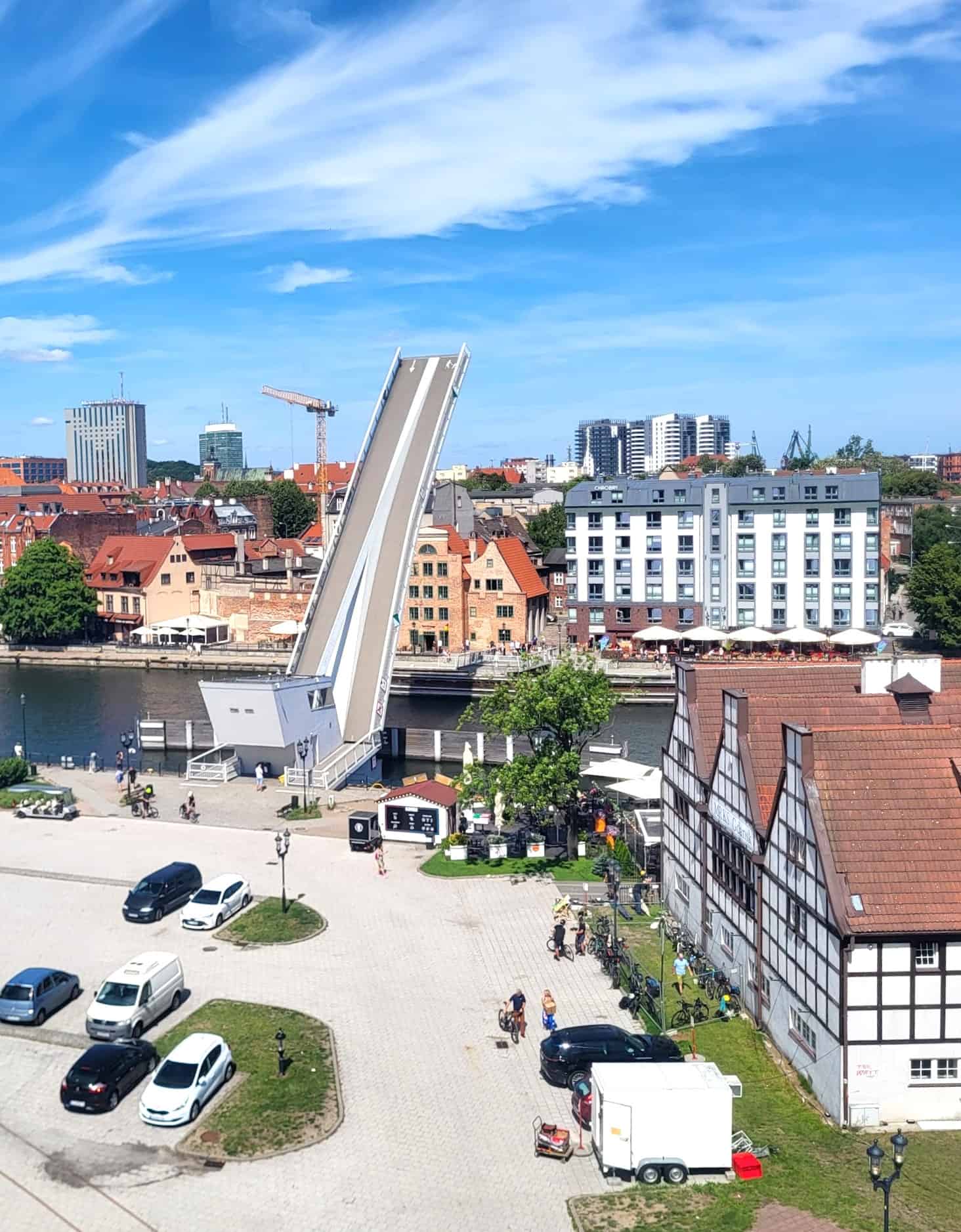 Atmósfera centrada en el futuro. Los proyectos de construcción en curso continúan ampliando la oferta de la isla, con nuevos desarrollos que se abren regularmente al público. El puente giratorio peatonal que conecta con el paseo marítimo del casco antiguo representa la ingeniería moderna que complementa la arquitectura histórica, creando una mezcla única entre el Gdansk antiguo y el moderno.