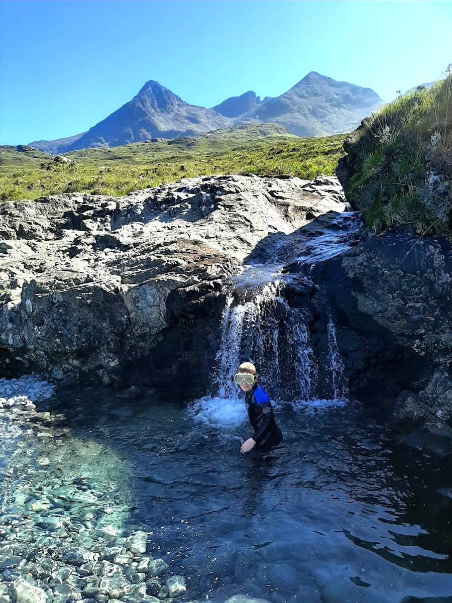 Aventuras al aire libre. He hecho senderismo desde Carbost hasta Glenbrittle, con las montañas Cuillin siempre a la vista. La zona es muy popular entre los senderistas, ciclistas y kayakistas. Nunca estás lejos de playas salvajes o tranquilas orillas de lagos. Lo imprescindible para mi estancia siempre incluye: