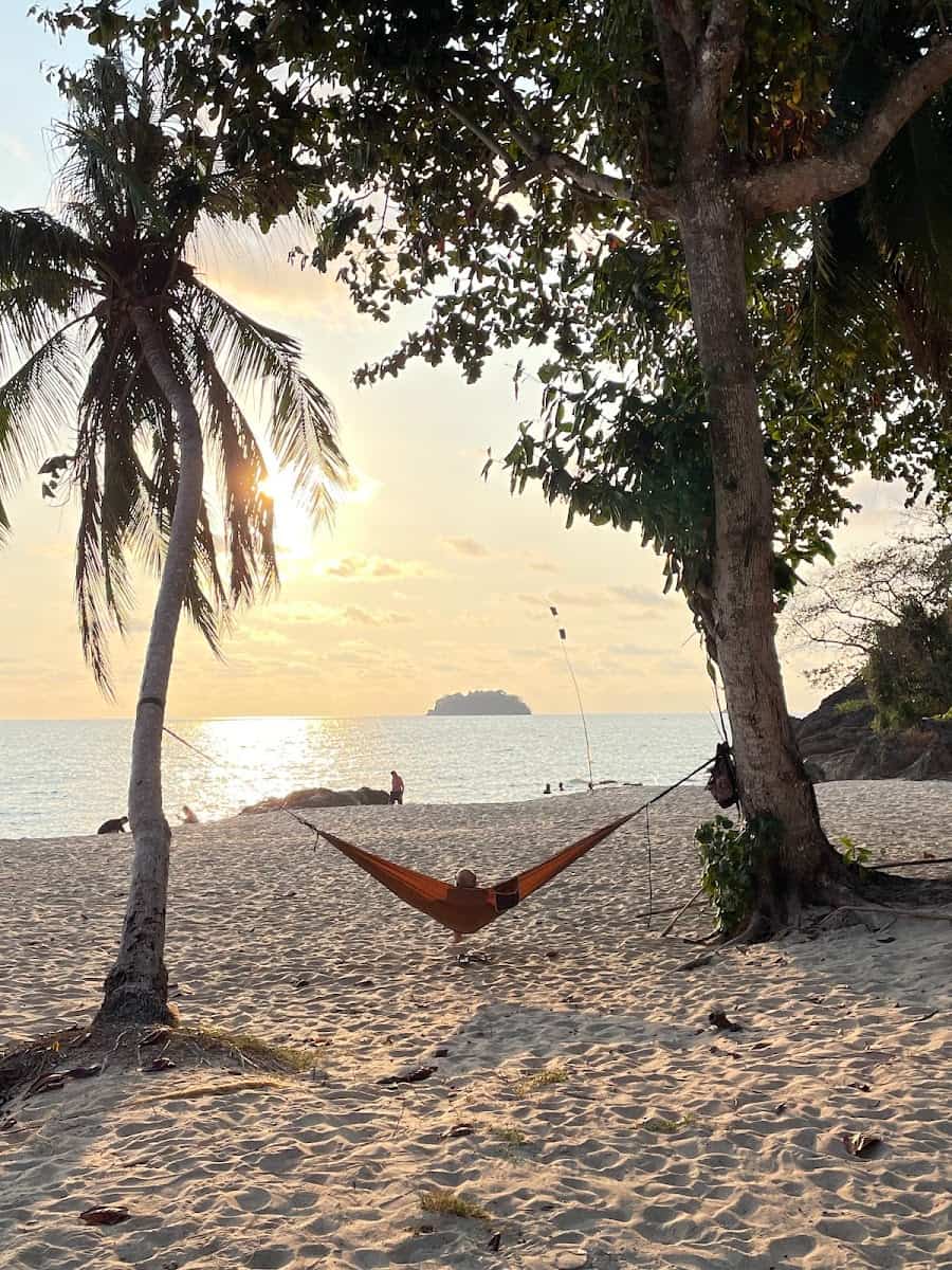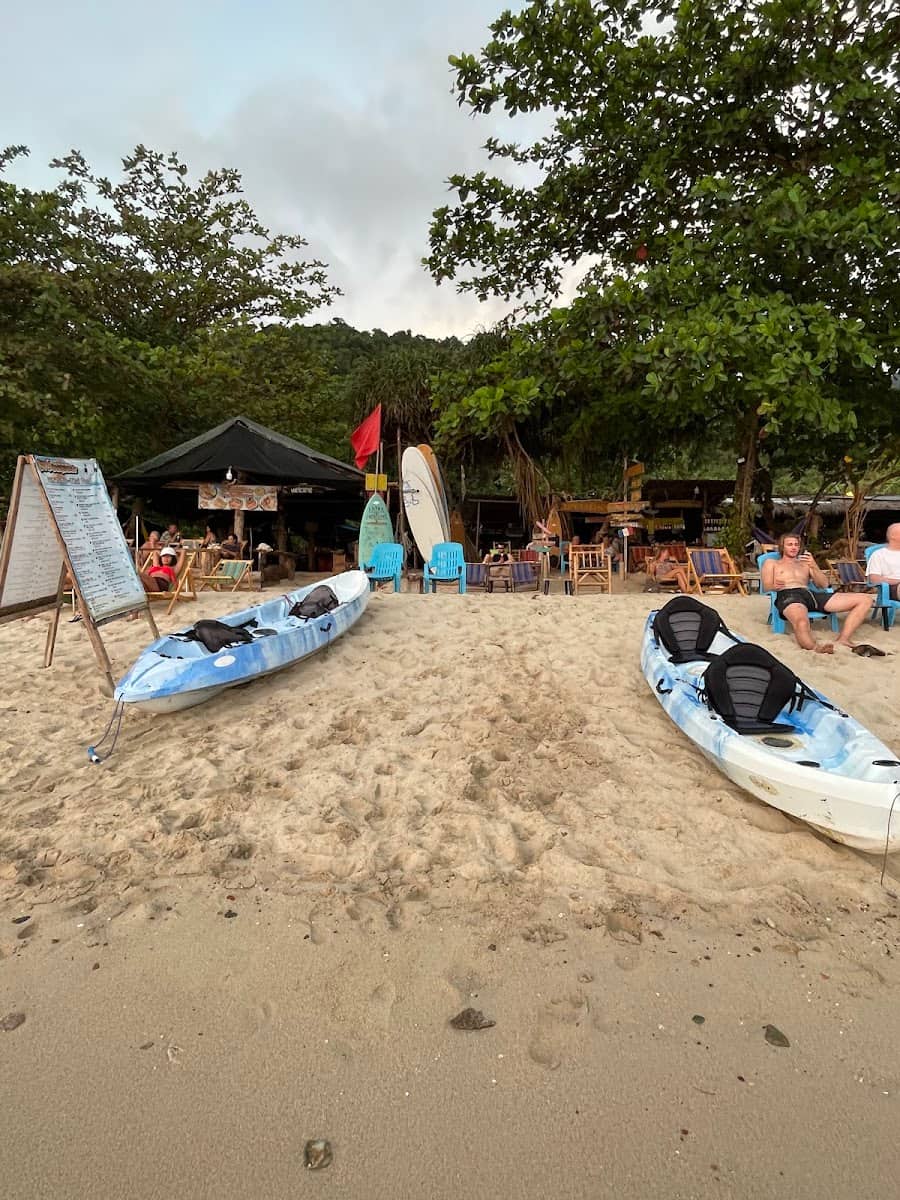 La magia del atardecer. Esta playa orientada al oeste ofrece unas vistas perfectas de la puesta de sol desde sus múltiples restaurantes y bares frente al mar. Los puntos rocosos de ambos extremos son miradores naturales. Yo recomendaría las rocas del sur, cerca de Porn’s Bungalows, para tomar las mejores fotos sin aglomeraciones.