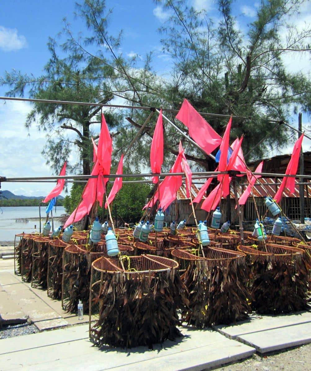 Puestos de marisco a la barbacoa. Lo mejor del mercado son los puestos de marisco a la barbacoa que ofrecen cangrejos (100 THB cada uno), gambas (100 THB por 6 piezas) y pescado entero (100-150 THB según el tipo). La preparación tarda hasta 20 minutos, pero la calidad y los precios hacen que merezca la pena.
