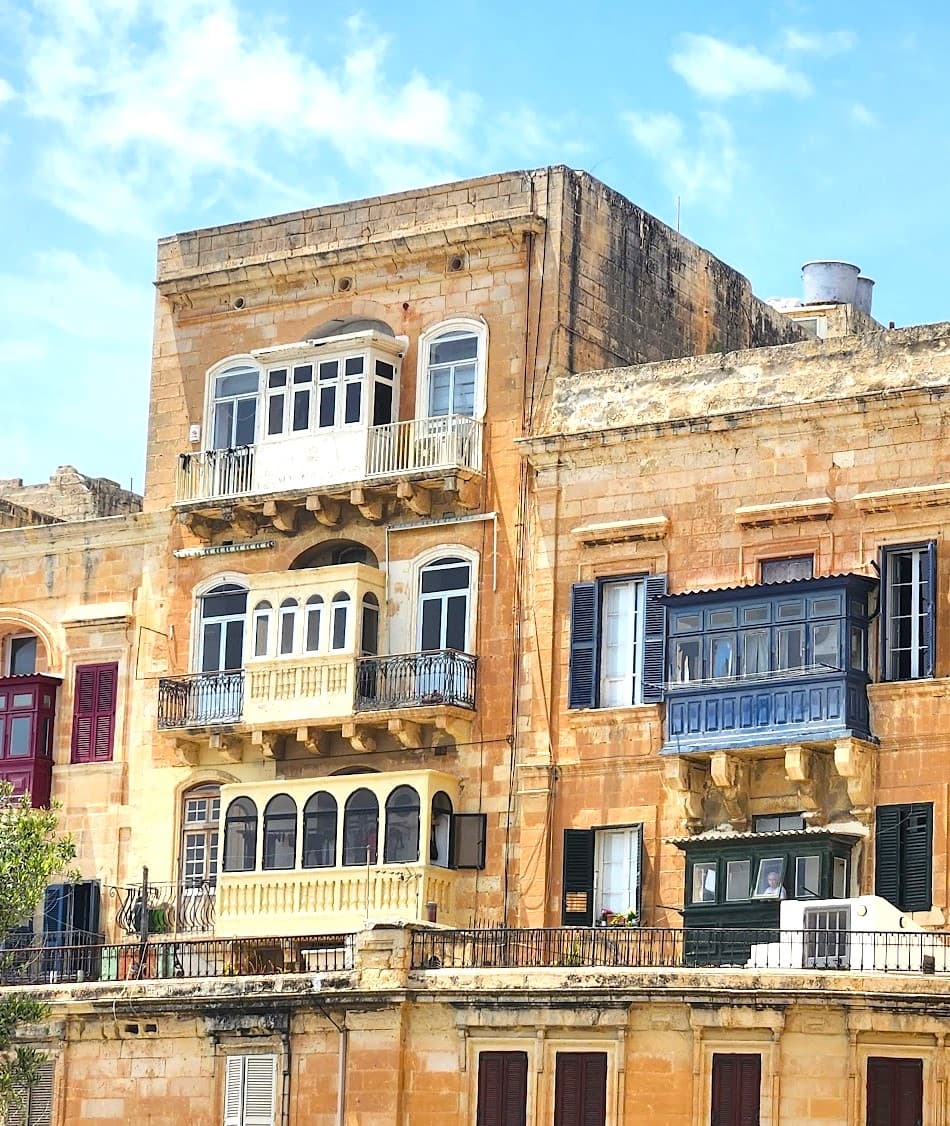 Qué puedes esperar de tu alojamiento. La mayoría de los alojamientos aquí son antiguas casas adosadas reformadas con gruesos muros de piedra caliza que mantienen el frescor, contraventanas de madera y pequeños balcones con vistas a las calles. Muchos tienen estos hermosos azulejos tradicionales malteses llamados cement tiles con motivos geométricos. El ascensor Barrakka Lift es muy práctico: te lleva hasta el paseo marítimo en 25 segundos en lugar de tener que bajar todas esas escaleras.