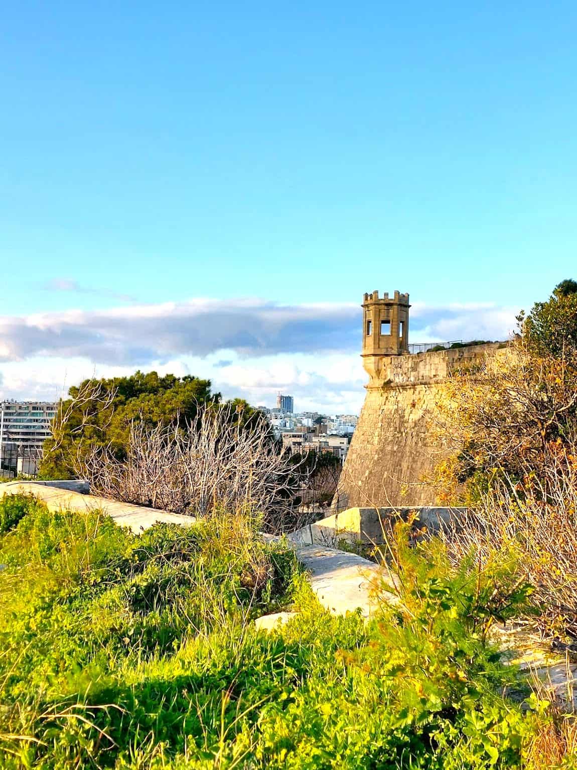 Espacios verdes y relajación. La zona de Granaries cuenta con unos hermosos jardines que la mayoría de los turistas nunca ven. Son perfectos para dar un paseo por la mañana o hacer un pícnic por la tarde. Las Floriana Lines (las antiguas fortificaciones) crean un interesante sendero histórico que recorre la zona. Es más tranquilo y verde que cualquier otro lugar de La Valeta.