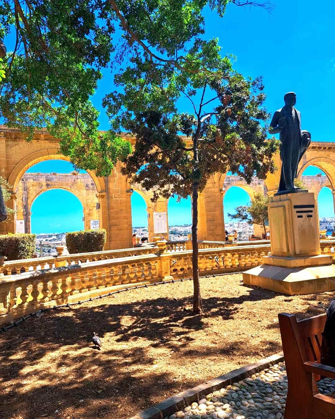 Las vistas. Sinceramente, esta es la mejor zona para disfrutar de las vistas del puerto sin tener que pagar una fortuna. Los jardines tienen unos arcos de piedra increíbles desde donde se puede ver cómo disparan los cañones todos los días al mediodía. He visto cruceros llegar desde aquí y las vistas del atardecer son increíbles. Toda la zona de las Tres Ciudades se extiende a tus pies: Birgu, Senglea y Cospicua se alinean al otro lado del agua.