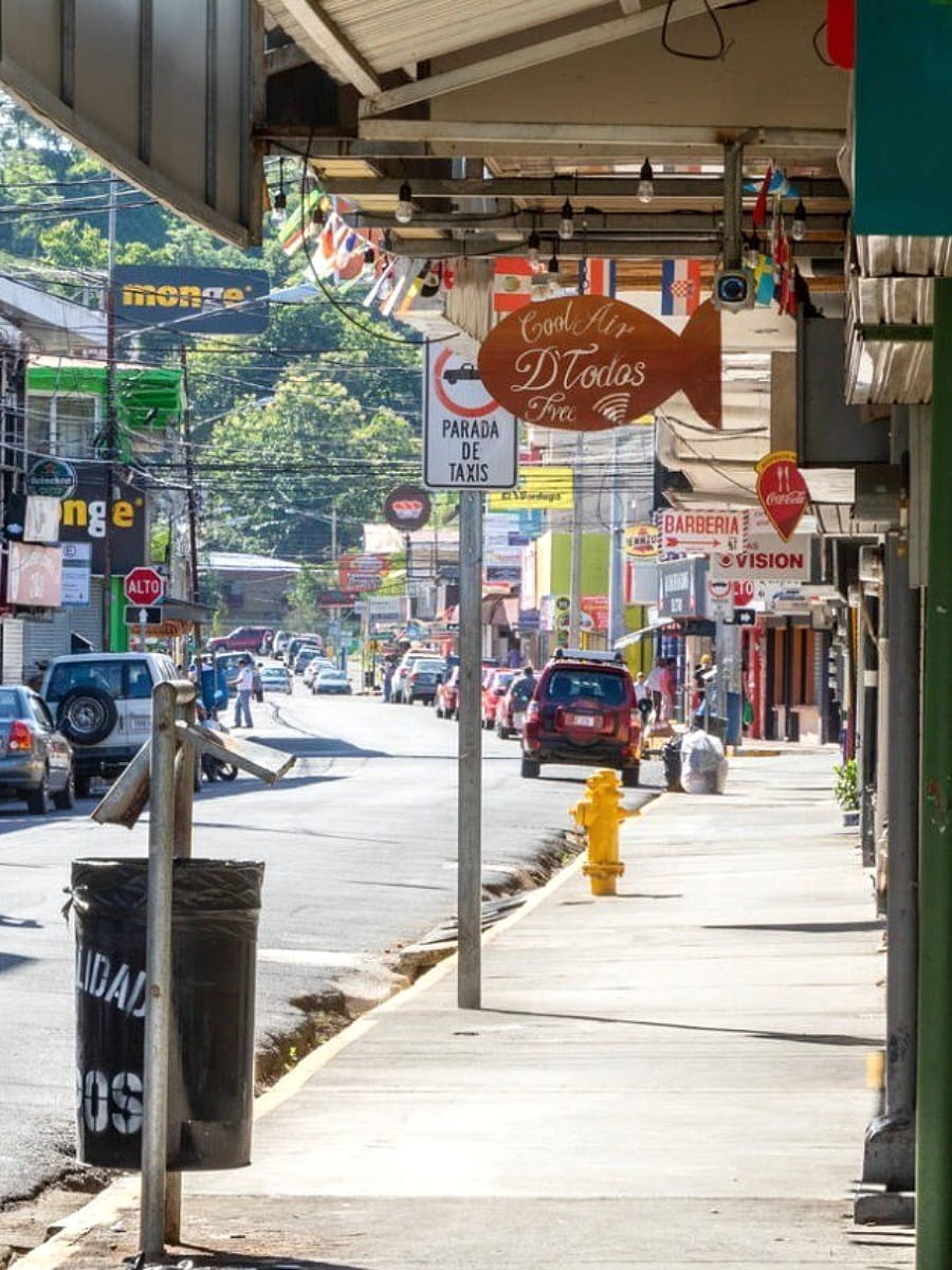 Vida local. Descubrí que alojarse en la ciudad de Manuel Antonio es mejor que estar cerca del parque nacional por pura comodidad. La calle principal está llena de vida, con sodas que sirven platos casados, vendedores de fruta y esa auténtica energía costarricense que no se encuentra en las zonas turísticas de playa. Se puede ir andando a Playa Espadilla en solo 8 minutos desde el centro de la ciudad, mientras que la entrada al parque nacional está a solo 12 minutos a pie.