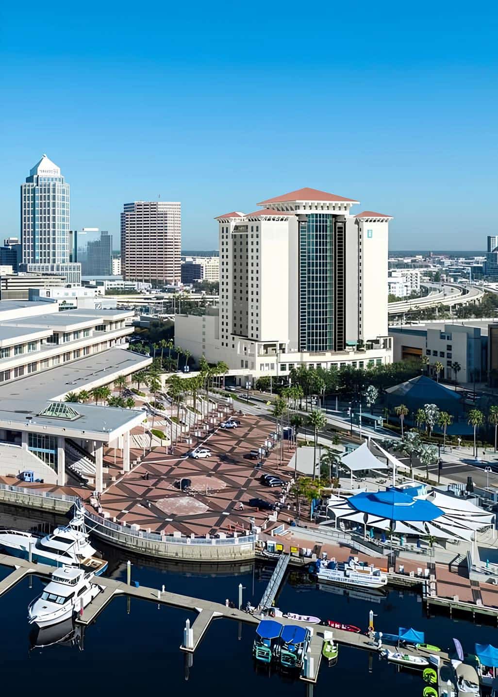 - The Westin Tampa Waterside – Hotel frente al mar en Harbour Island con habitaciones modernas, piscina al aire libre, gimnasio y restaurante, a pocos pasos del centro de convenciones de Tampa y del paseo fluvial.